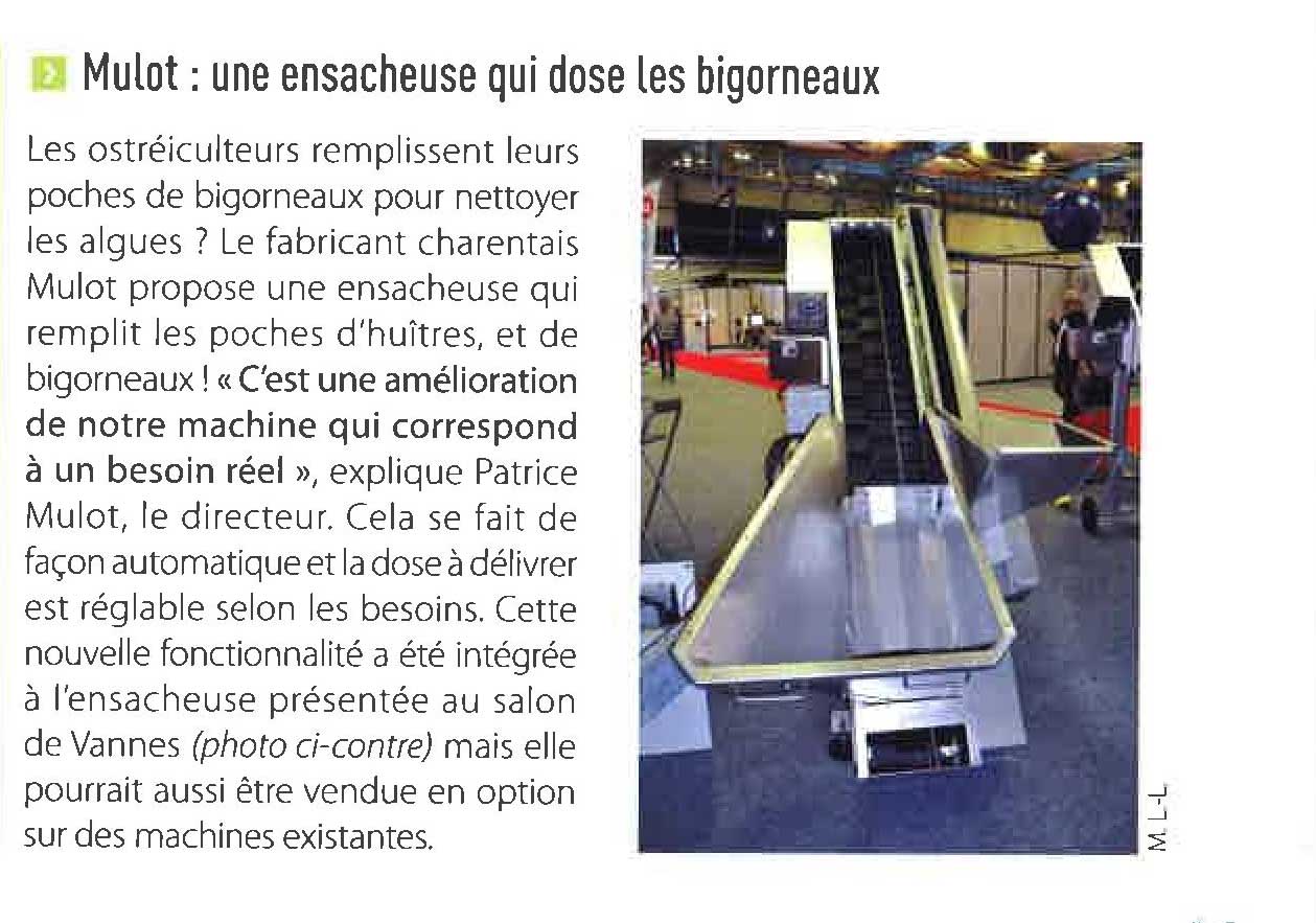 Les ostréiculteurs remplissent leurs poches de bigorneaux pour nettoyer les algues ? Le fabricant charentais Mulot porpose une ensacheuse qui remplit les poches d’huîtres, et de bigorneaux !
